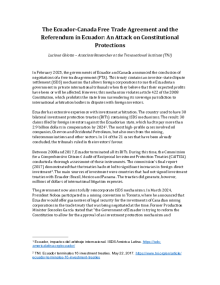 The Ecuador-Canada Free Trade Agreement and the Referendum in Ecuador: An Attack on Constitutional Protections