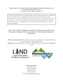 UN Brief: Report on the Violation of the Rights to Indigenous Self-Determination and Democratic Participation of Indigenous Peoples in Canada Due to “Fast-Tracking” Legislation for Major Projects