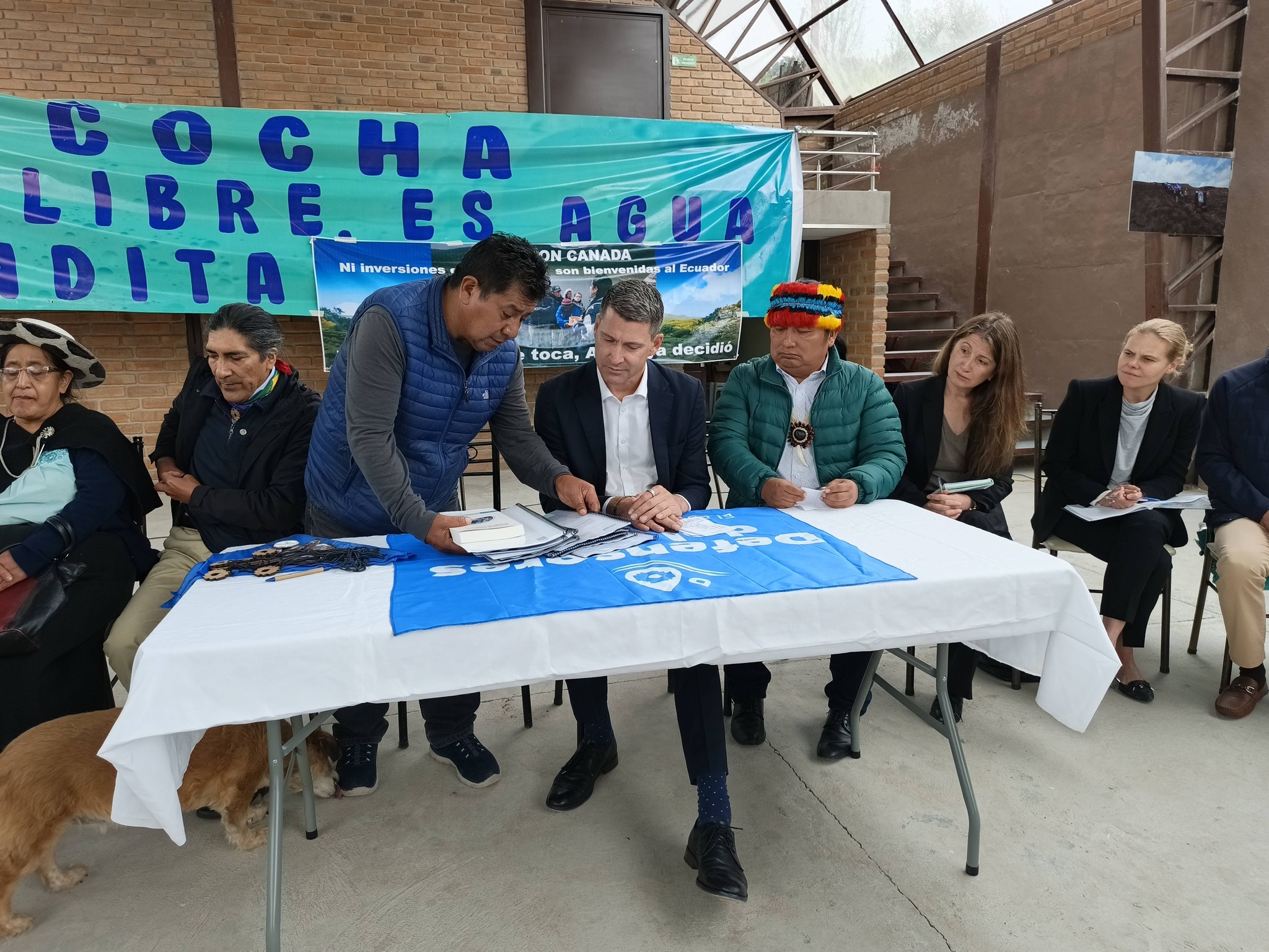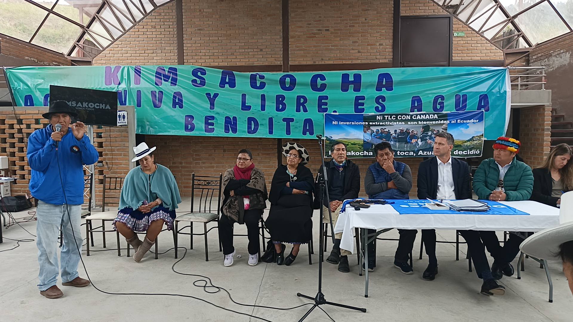 I ask the ambassador to ensure that this message we bring to you as Ecuadorians reaches the ears of the Canadian government and that it be respected. These companies that always come to cause damage and divisions in the territories between brothers and sisters should not be financed. We will continue to be vigilant to ensure that the decisions of the grassroots movements and the peoples who defend the water are respected and that mining companies never return to this territory”, Marlon Vargas, president of the Confederation of Indigenous Nationalities of Ecuador (CONAIE).